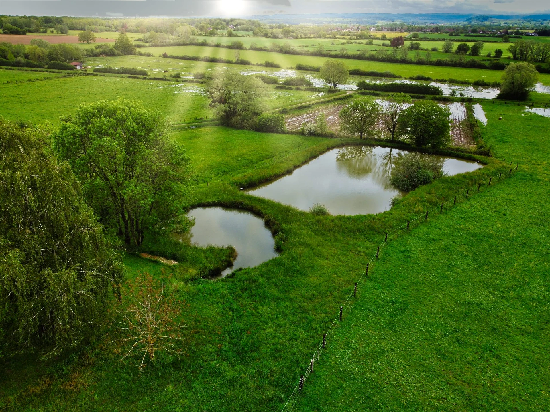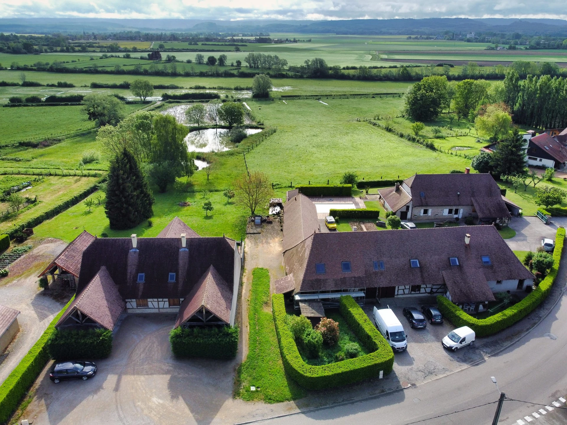 Les terrasses et jardins bénéficient d’une vue dégagée et imprenable sur les prés et mares environnants.